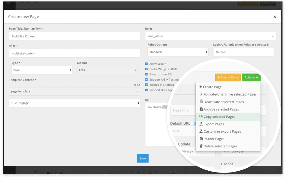 Indition CMS is built from the ground up to be multi-site. No longer will you have to install multiple products or copy and paste code. Simply click a button, add a new site and decide if you want a clean site or to reuse existing assets and content.