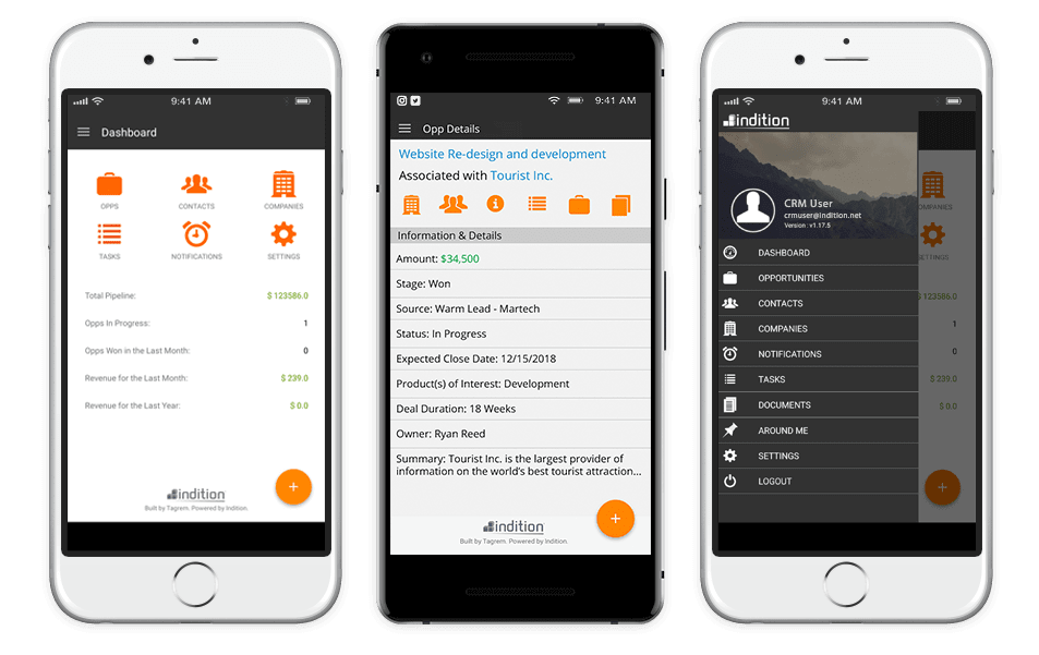 Indition CRM comes with a fully capable mobile app to complement the browser based CRM system. Update information from anywhere to provide details while they are fresh in your mind.